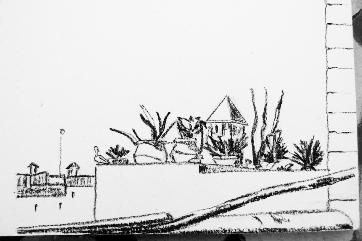 Chap 2 – 9 – Aux portes du Sud November 9, 2015 1223 × 816 Chap 2 – 9 – Aux portes du Sud Croquis de Véronique : les toits d’Essaouira.